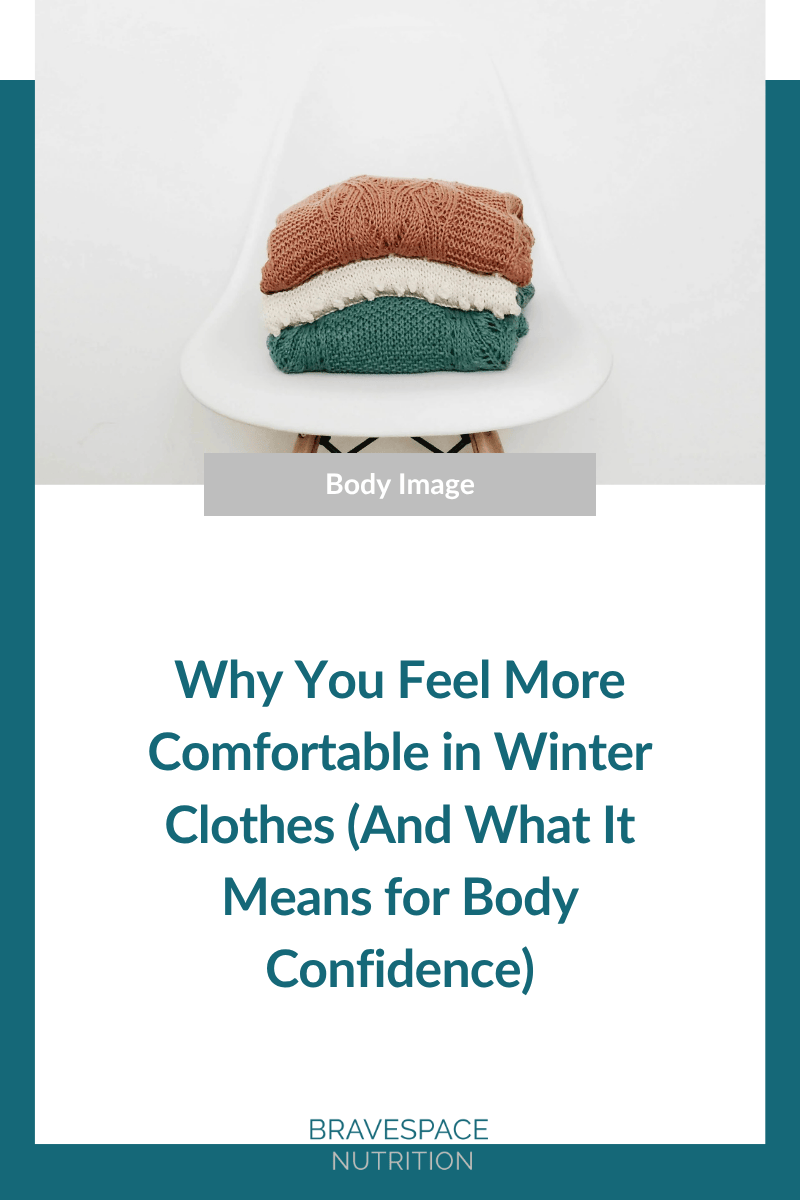 These feelings aren’t just about clothes but rather they’re tied to internalized diet culture and weight-stigma messages and how we relate to our bodies. Recognizing this is the first step toward cultivating body confidence in winter vs. summer clothes.